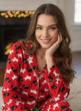 Flannel People Women Pajamas Set - 100% Cotton Flannel Pajamas Women Warm PJs Set - Winter Skis - Pink